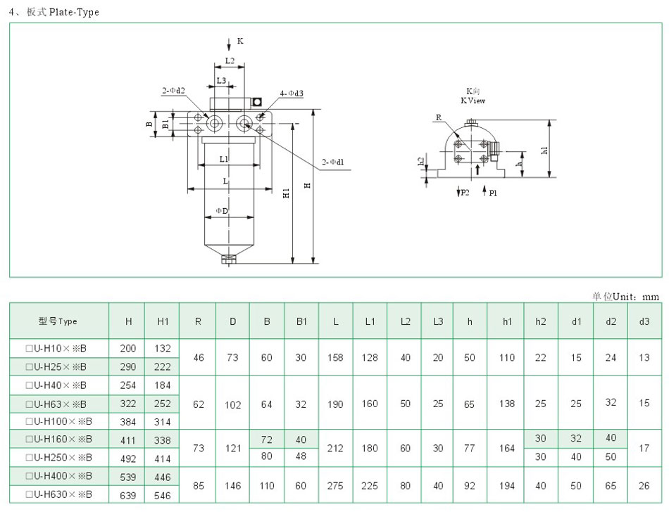 ZU-H壓力管力過(guò)濾器安裝在液壓系統(tǒng)的壓力管路上,用以濾除液壓油中混入的機(jī)械雜質(zhì)和液壓油本身化學(xué)變化所產(chǎn)生的膠質(zhì)、瀝清質(zhì)、炭渣質(zhì)等,從而防止閥芯卡死、節(jié)流小孔縫隙和阻尼孔的堵塞以及液壓元件過(guò)快磨損等故障的發(fā)生